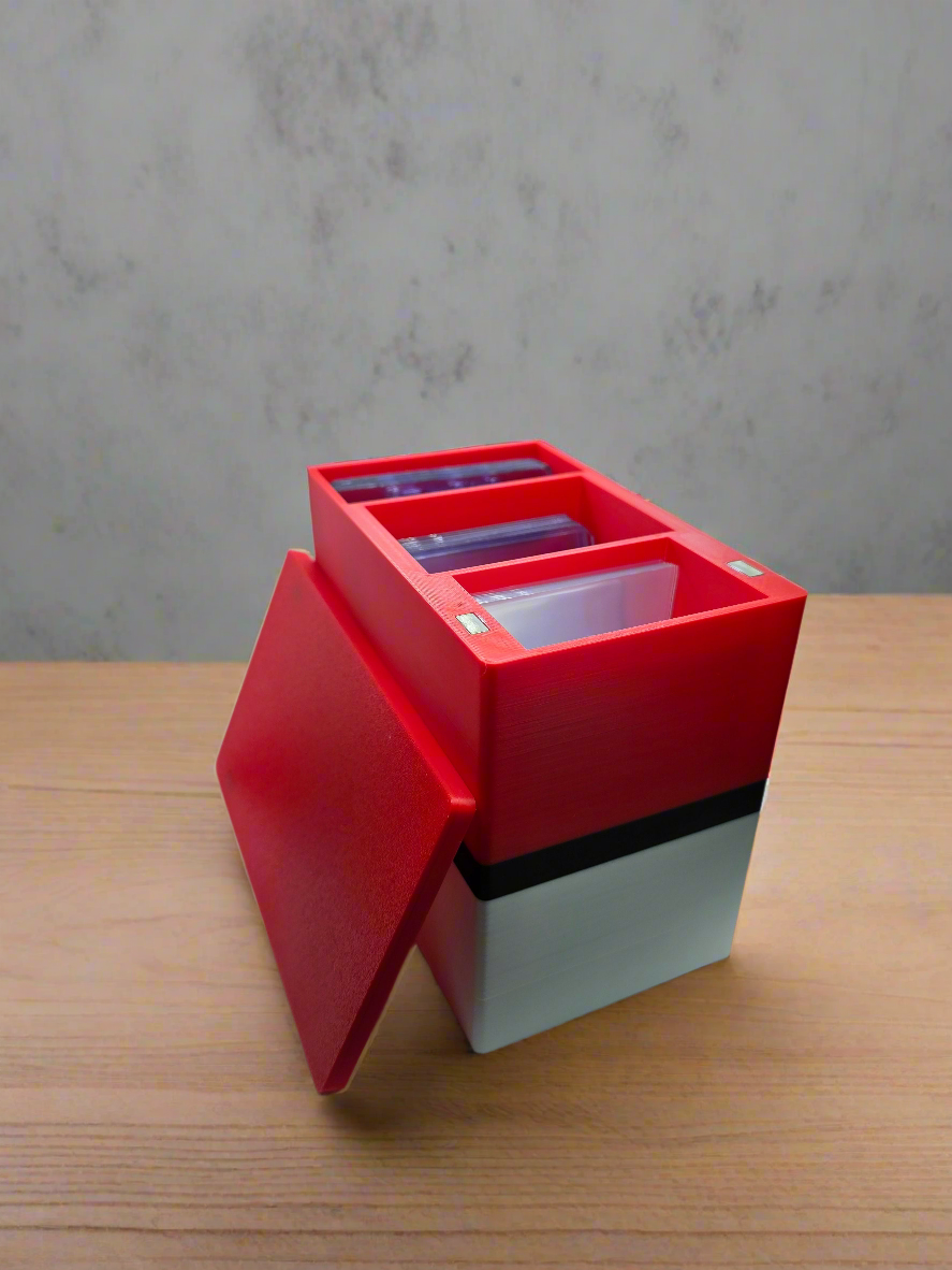 Keep your space tidy with this sleeve, toploader, and card saver storage box. Comes with a magnetically secured lid to keep your sleeves and holders clean.